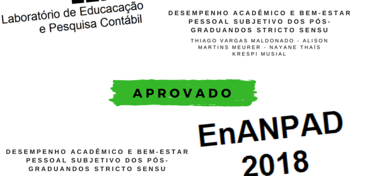 Laboratório de Educação e Pesquisa Contábil (LEPEC) está com presença confirmada no EnANPAD 2018, que será realizado no mês de outubro na cidade de Curitiba. O LEPEC da UFPR aprovou um manuscrito para apresentação e discussão. Parabéns a todos os envolvidos! ![]()